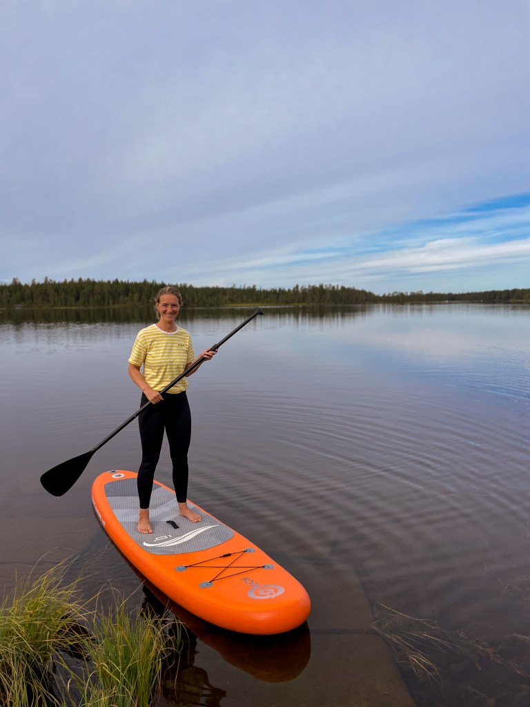 Finnland ist das Land der 1.000 Seen (tatsächlich sind es 188.000). Einfach baden (wenn es das Wetter zulässt – bei uns wars schon etwas frisch), Yoga, die Natur genießen, nebenbei Heidelbeeren pflücken oder wie in unserem Fall das SUP auspacken und lospaddeln, in die Stille hinein. Es gibt viele Badeplätze, auch mit Spielplätzen. Freistehplätze direkt an den Seen gibt es fast überall. Mit den Mücken hatten wir im August schon etwas Glück, aber Mückenspray zählt in Finnland trotzdem zur Grundausstattung.